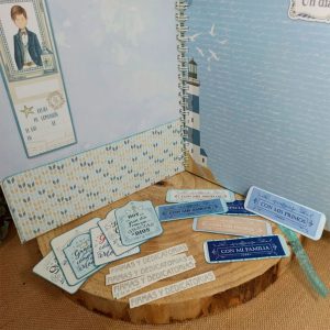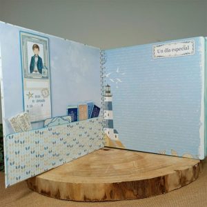 Es un álbum hecho desde cero totalmente a mano, y personalizado con el nombre del niño o niña y la fecha de la comunión.
