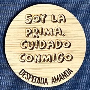 En la chapa «Soy la prima. Cuidado conmigo» puedes poner el parentesco que quieras: amiga, tía, abuela… Indícalo aquí abajo al realizar el pedido