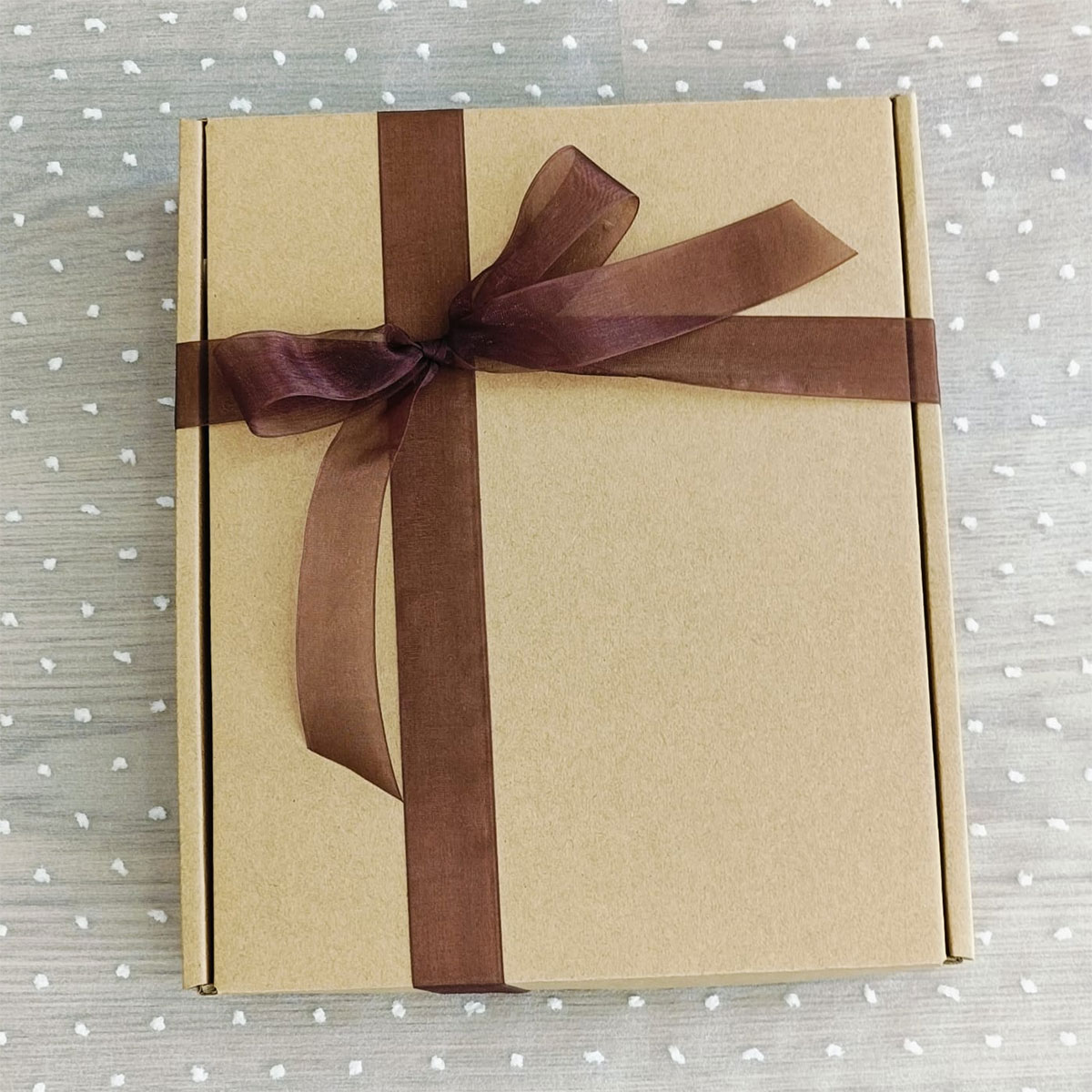 - Presentación cuidada: Caja de cartón craft con lazo, lista para regalar.